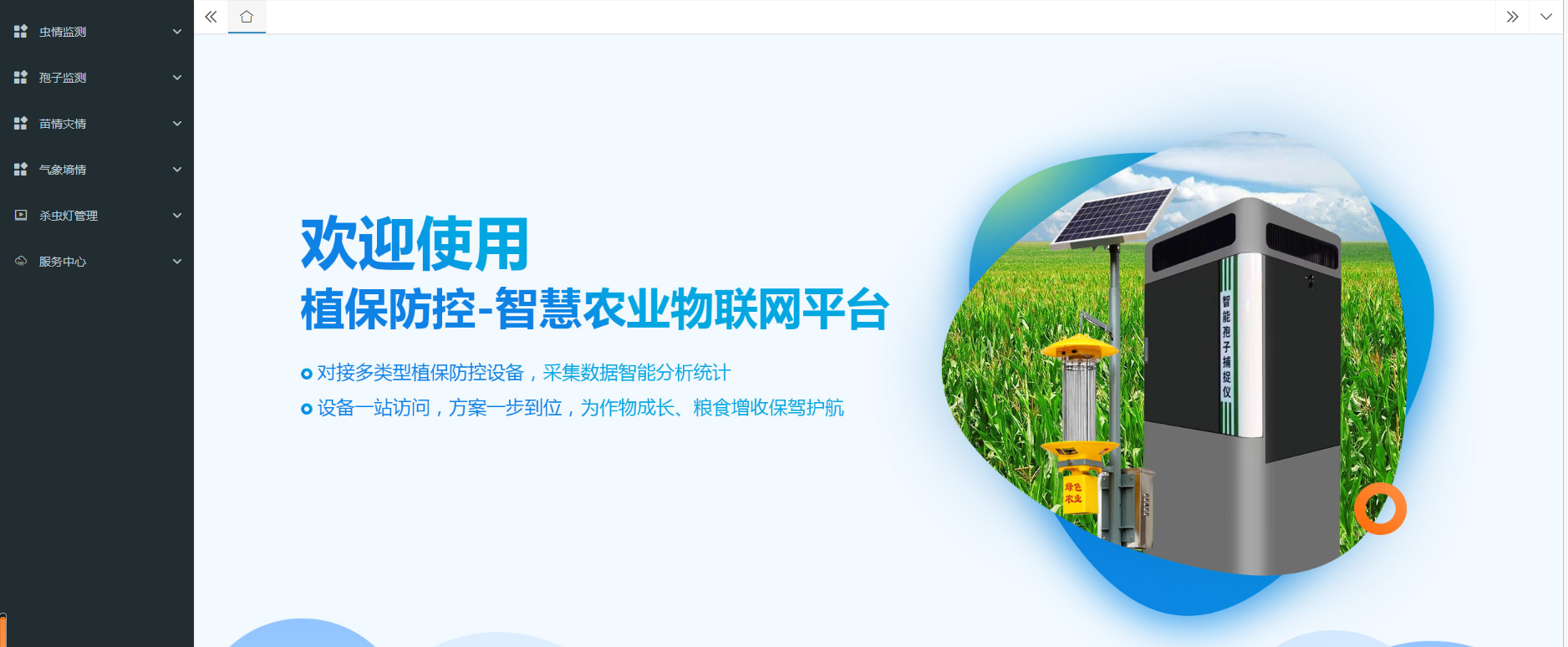 智能农业病害监测系统:智能孢子捕捉仪,主要由孢子捕捉装置、孢子承载装置、图像采集装置、网络传输模块、电源与防雷系统组成。该设备利用现代光电数控技术,实现远程自动捕捉各种花粉和孢子信息,自动更换载玻片,自动拍照,图片数据自动上传,自动运行等功能。可根据需要,实时对环境气象和孢子病害情况上传到指定网络平台,分析人员可在平台对每个时间段内收集到的孢子进行手工分类与计数,形成孢子测报数据库,供专家远程对病害的发生与发展进行分析和预测,为现代农业提供服务,满足病情预测预报及标本采集的需要,及时防治病害发生。
